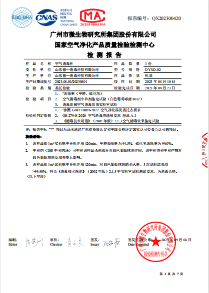 空氣消毒杯檢測報告